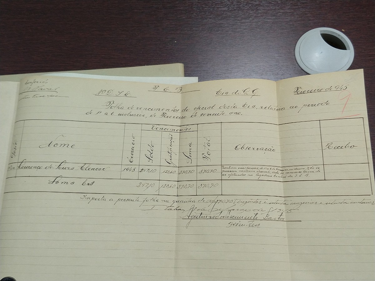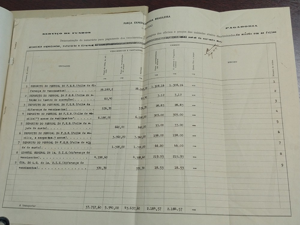 Demonstração do Numerário Pgto Venc 1a DIE - Junho 1944